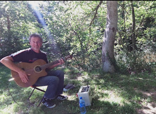 Un peu avant 13 h, je m'installe à l'ombre près des terrains de pétanque,
